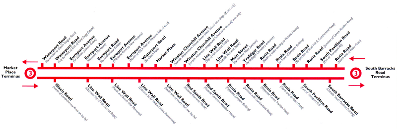 OUTBOUNDMarket Place Terminus to South Barracks Route: Market Place to South Barracks INBOUNDSouth Barracks Terminus to Market Place Route: South Barracks to Market Place